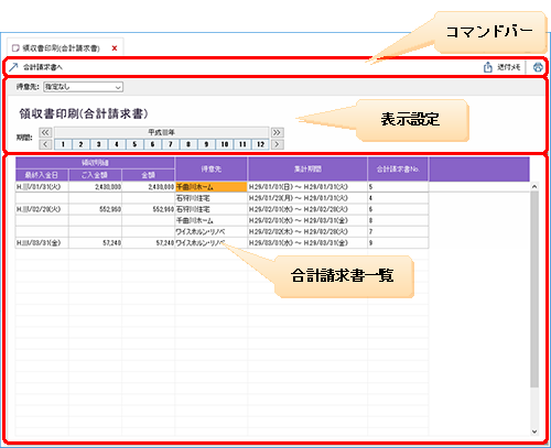 合計請求書の得意先が表示されます。 |