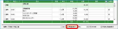 | 6. | ウィンドウ下部にある[原価を表示]にチェックを付けます。 |