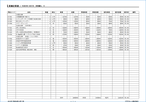ここでは[見積書]ウィンドウ(詳細)で、原価計算書を作成します。