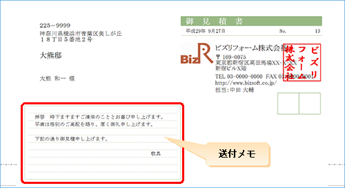 同じ内容の送付メモを繰り返して使うときは、[送付メモライブラリ]ウィンドウに登録しておくと、登録済みの送付メモを選択できるようになり入力の手間を軽減できます。