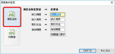 また、[初期値に戻す]ボタンをクリックすると、項目名を初期値に戻せます。