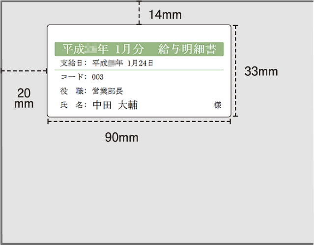 印刷した給与明細書・賞与明細書は、次のような窓付き封筒に収まるように調整されています。