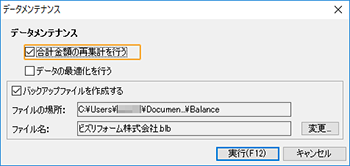 すべてのウィンドウが閉じ、[データメンテナンス]ダイアログが表示されます。