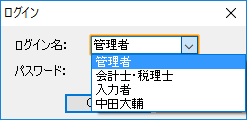 ユーザー(ログイン名)にパスワードを設定することで、どのユーザーがどの取引を入力したのかを特定したり、機能を制限したりすることができます。