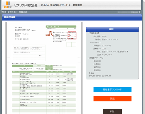 サーバーにアップロードした見積書データに振られる固有の番号が表示されます。 |