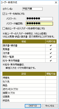 [ユーザー新規作成ダイアログ]で利用可能な機能にチェックを付けていても、同時入力モードでは利用できない機能があります(詳細)。
