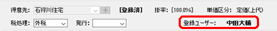 [税処理]の横に登録ユーザー名が表示されます。