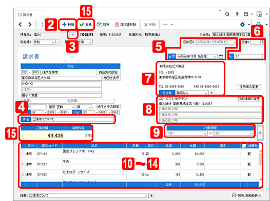| 6. | 必要があれば、伝番や請求書番号を変更します。 |
